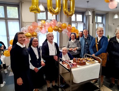 With you, we want to express our gratitude to God for all these life years He is granting you. You were born in Roubaix 100 years ago. You entered the Congregation of the Franciscans of Calais, now named Franciscan Missionaries of Our Lady, in the midst of the Second World War.